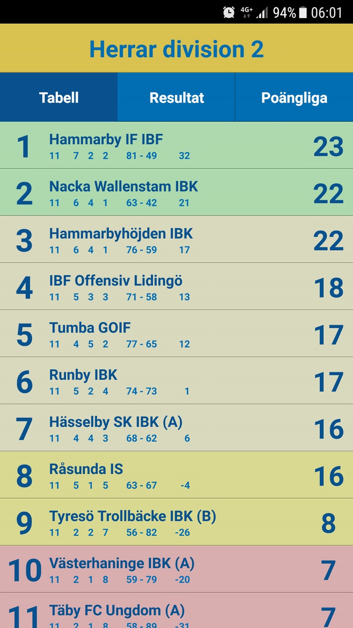 Efter att Nacka mött alla lagen är placeringen tvåa. Hösten har varit bra. Tappat poäng mot en del lag som ligger i nedre delen av tabellen. Men också vunnit mot dom flesta topplagen! Släpt in minst mål av lag. Och med lite flyt hade blivit ännu mer framåt. Ska bli kul och spännande att följa Nacka efter nyår. Då blir dags att möta topplagen igen.